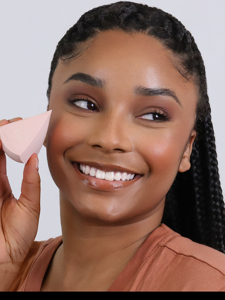A small triangle-shaped sponge that helps blend liquid and cream products into hard-to-reach areas with a seamless finish.