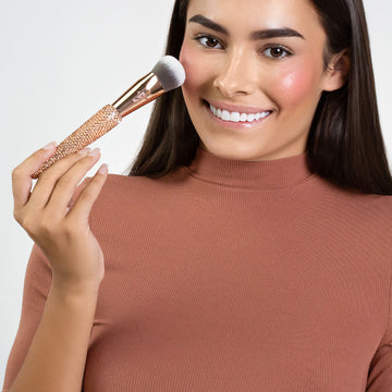 Using the pointed edge, gently bounce dampened sponge into the hollows of the cheek, temples, sides of the nose, and jawline to blend cream or liquid contour. Clean sponges after each use.